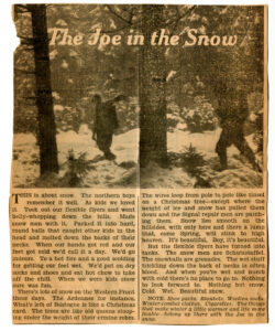 Clipping of newspaper article titled “The Joe in the Snow,” describing the conditions in Belgium for soldiers during the harsh winter of 1944-1945. Stars and Stripes, Vol. 1, No. 181, n.d.[January 1945]